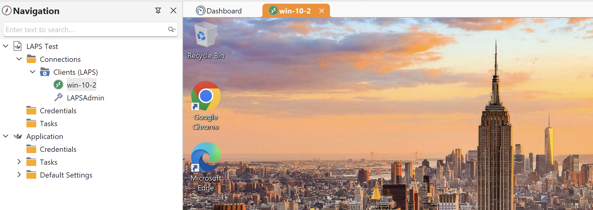 When double-clicking on one of the Remote Desktop objects, the connection will be established automatically, as the Dynamic Credential has been assigned to the corresponding RDP object: