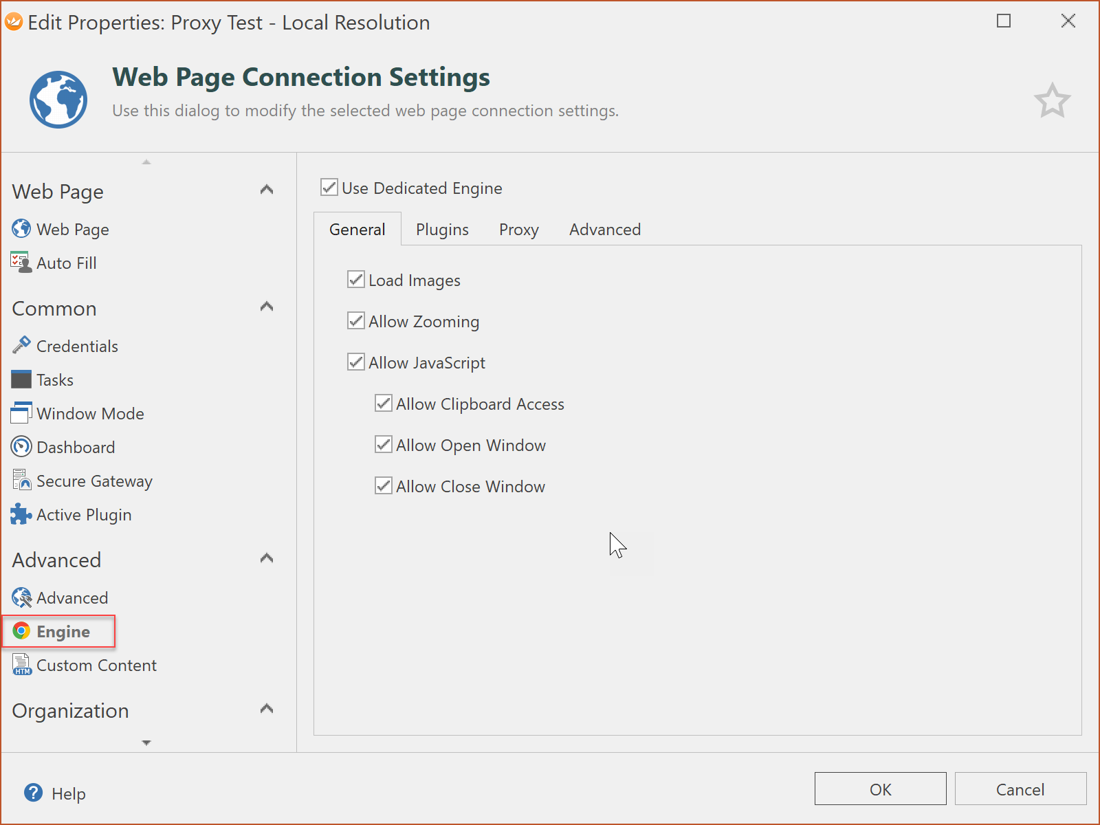 Check the “Use Dedicated Engine” to let Royal TS create a dedicated/isolated engine for the web page connection tab. You may now ask yourself, what do I gain from having a dedicated engine?