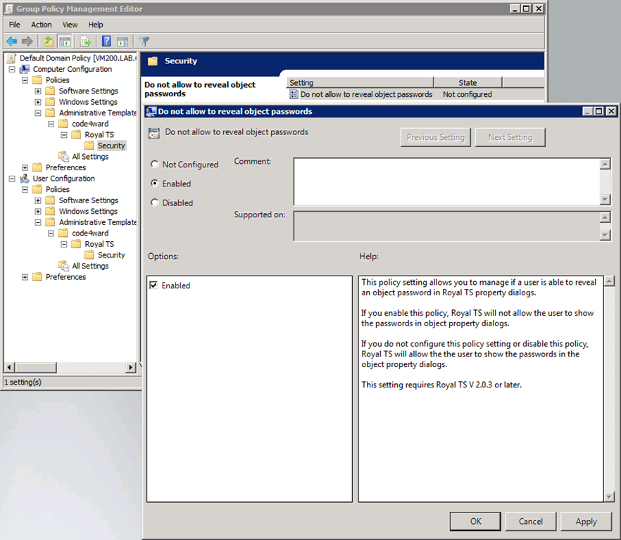 In 2.0.3 you can now also set a registry value to disable the “reveal password” functionality in object dialogs (like credential or connection). We’re also including an ADMX/ADML file to help you deploy this using GPO: