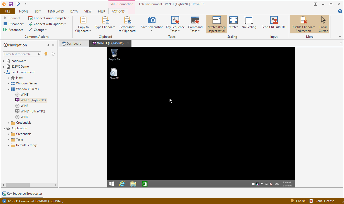 Finally, no more dependency to external VNC viewer applications. Royal TS 3.2 now ships with a new, integrated VNC plugin: