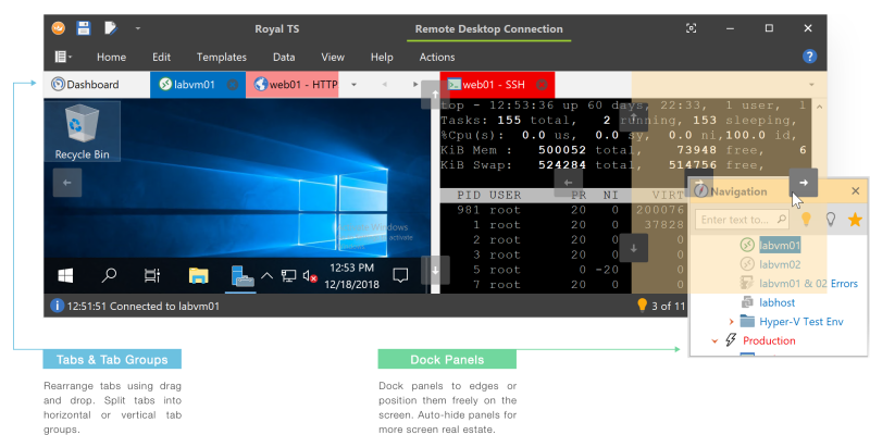 Aside from software functionality and performance, a personalized working space which fulfils your needs and requirements, is half the battle won. Royal TS/X provides a full range of settings to customize the way that yo...