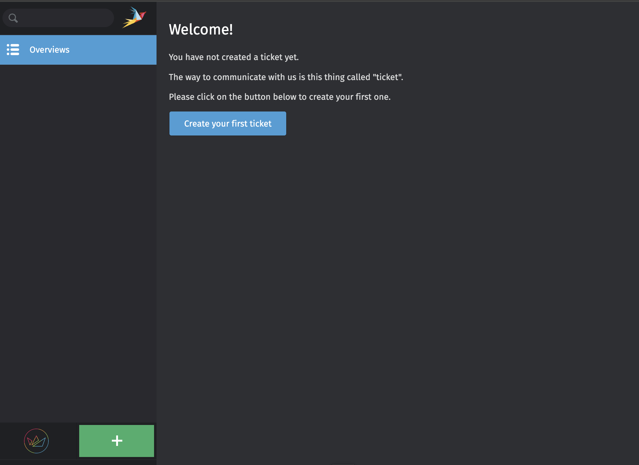 Once there, you can create a new support ticket via the + button: