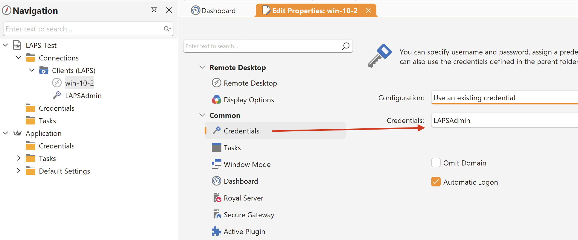 When double-clicking on one of the Remote Desktop objects, the connection will be established automatically, as the Dynamic Credential has been assigned to the corresponding RDP object: