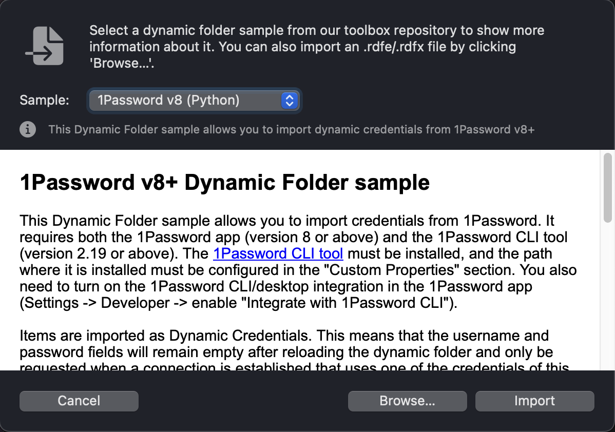 We are happy to announce that you can now integrate 1Password within Royal TS/X via an easy to set up Dynamic Folder script based on Python.