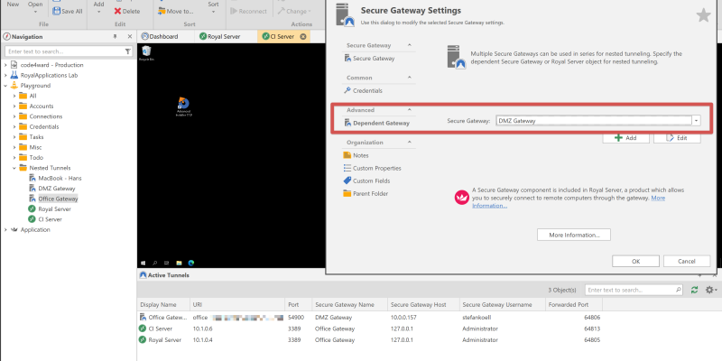 Our latest Royal TS V6 Beta for Windows comes with a brand new feature that allows you to "nest" or "chain" secure gateway (SSH) tunnels. Since this feature has been requested a couple of times, we have now implemented...