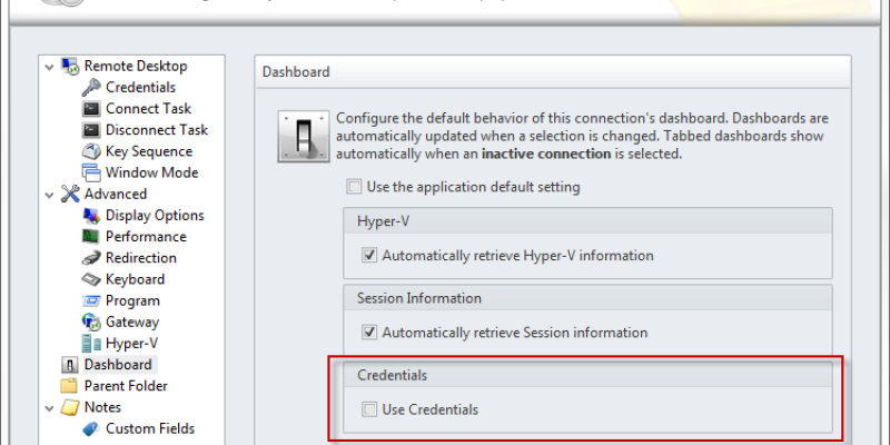 Due to some security considerations, we will change the default behavior of Royal TS’ Hyper-V and Sessions dashboard.