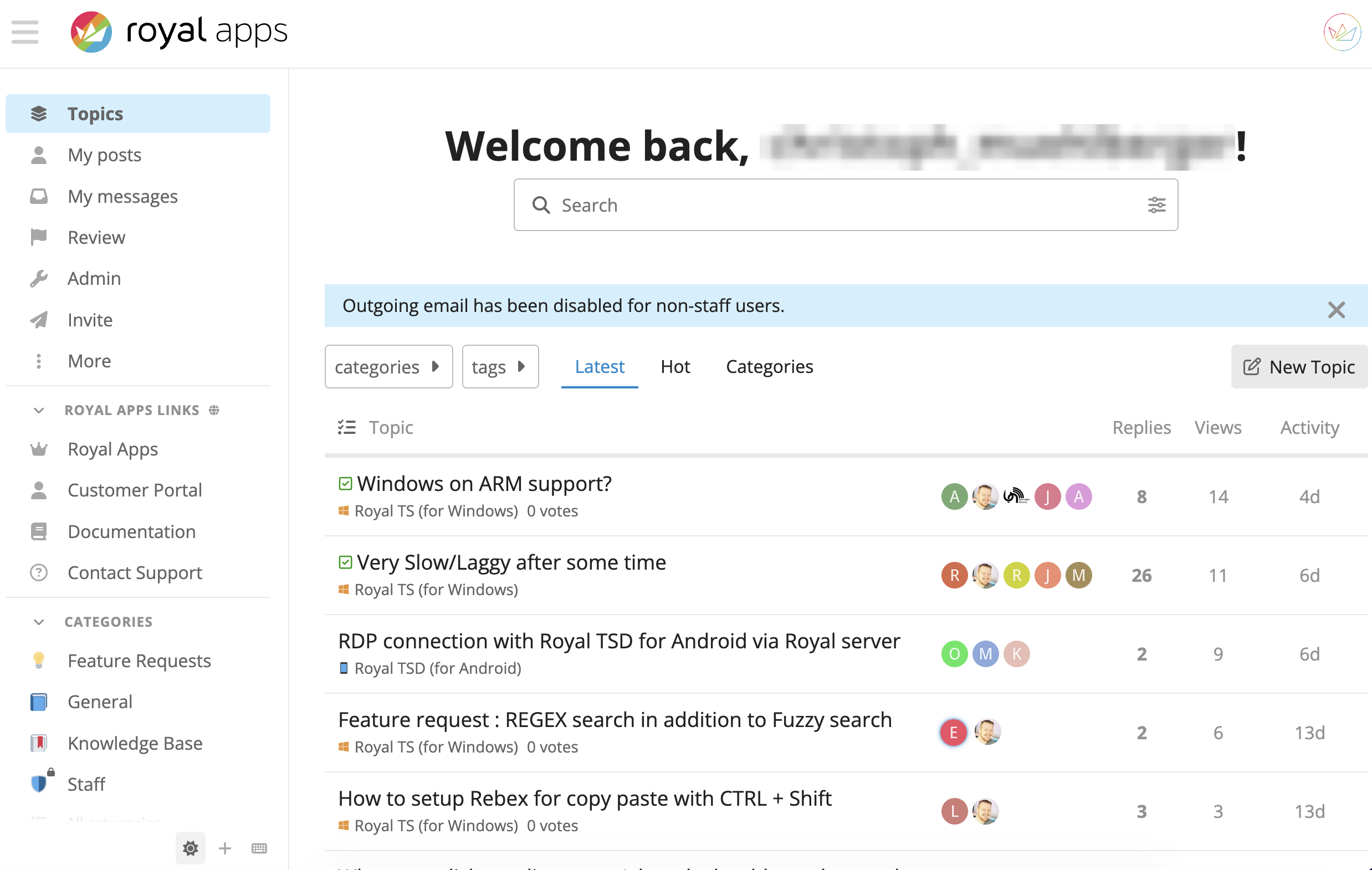 Lastly, you can access our Community page via royalapps.com/go/forum, which allows you to view and engage in our forums or read through our Knowledge-Base articles: