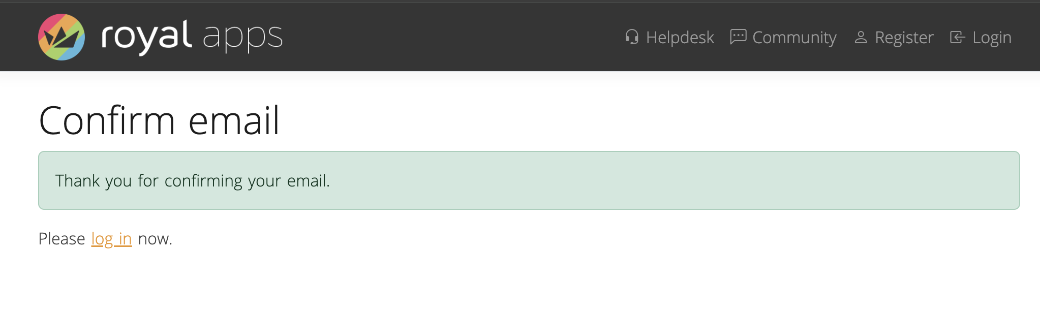 Once you've confirmed your email and signed up, you can log in via royalapps.com/go/my.