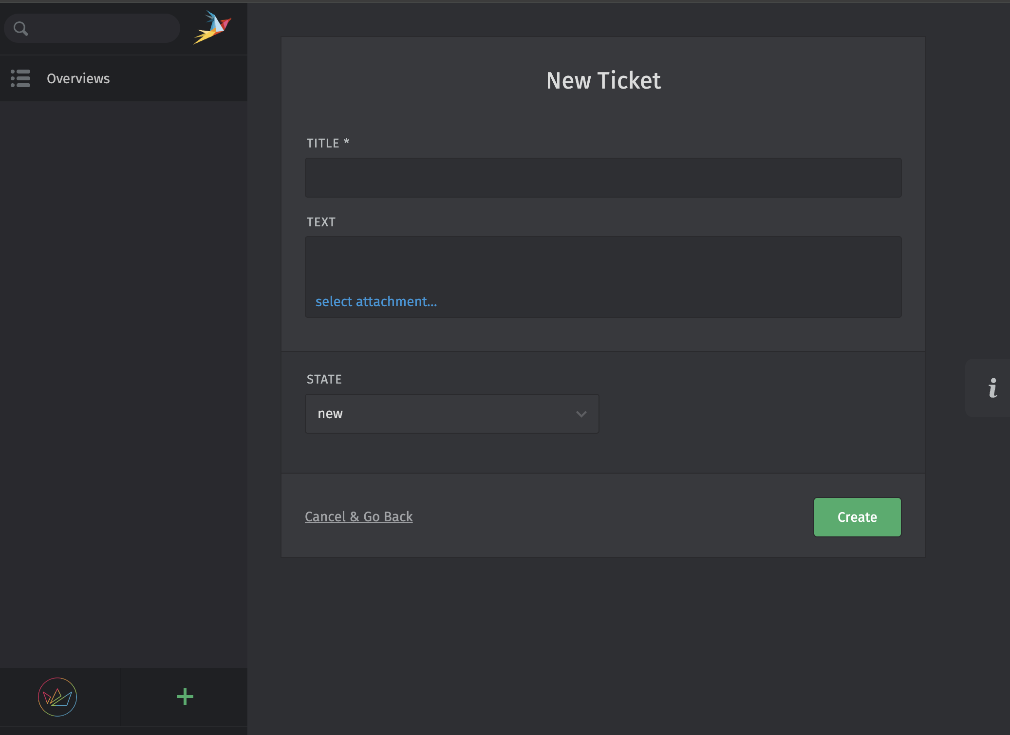 Once there, you can create a new support ticket via the + button: